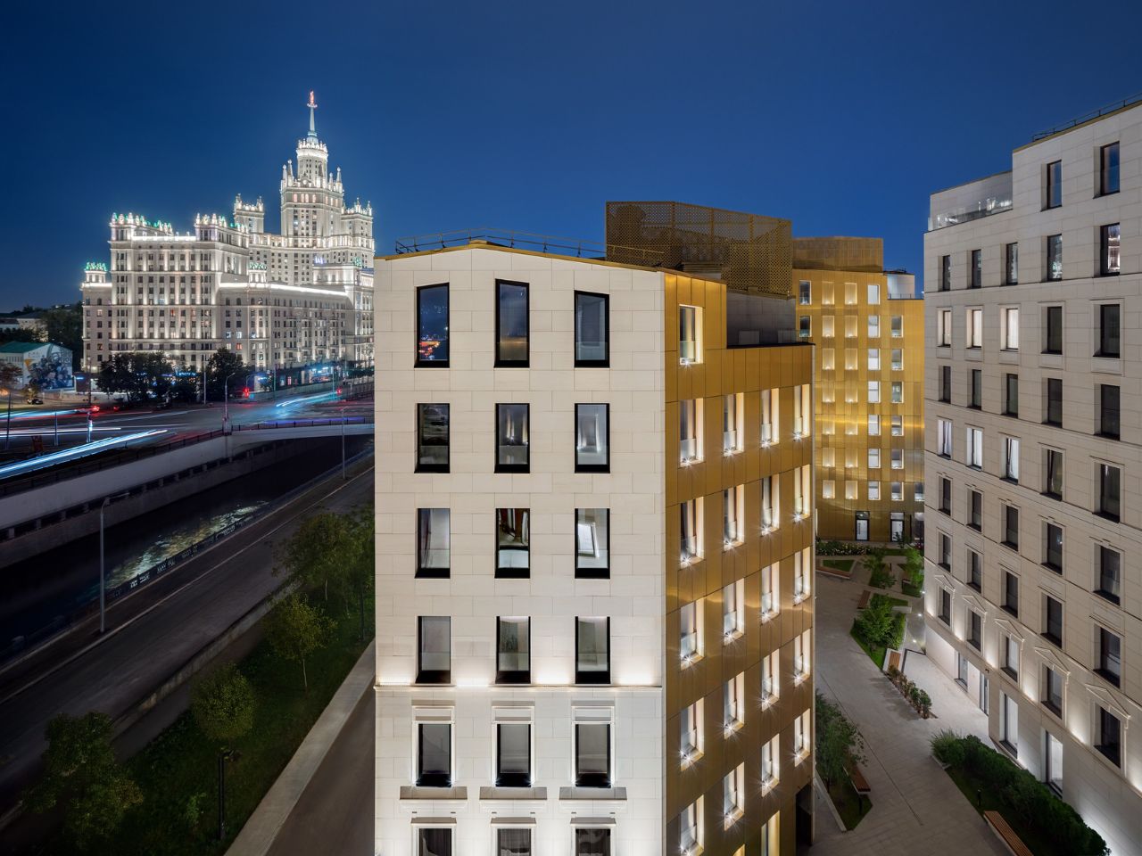 Архитектурная концепция с фасадами из светлого юрского мрамора в сочетании с медью от одного из ведущих архитекторов Вадима Грекова – современное прочтение русского классицизма и западного модернизма. Восемь особняков малой этажности (7-9 этажей) названы в честь известных монет различных исторических эпох: DUCAT, CONDOR, SOVEREIGN, NOBLE, FLORIN, LOUIDOR, SOLID, AUREUS.